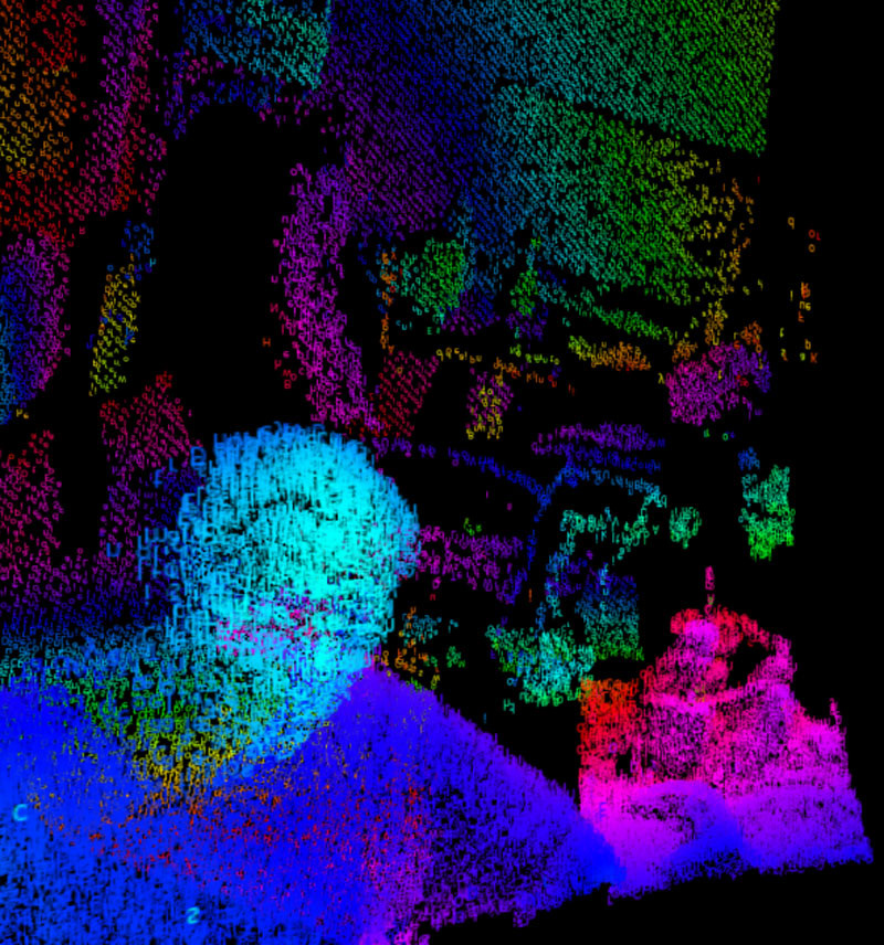 Instead of a standard point cloud (dots), we rendered the environment as a point cloud composed of letters. In one example, we used a live news feed, and in the other, the lyrics of a song. The idea was that the digital avatars would be formed by text. The quick example at my desk worked a bit better in terms of visibility of the letters. We tried changing the settings for the performance video but it was difficult to capture it well given various technical and logistical constraints, including the fact that I have a PC and Nazia has a Mac (install didn't work!), and also that we’re based in different locations so had to work remotely. We ended up using a Mini PC as a passthrough, with the Mac recording via a capture card.